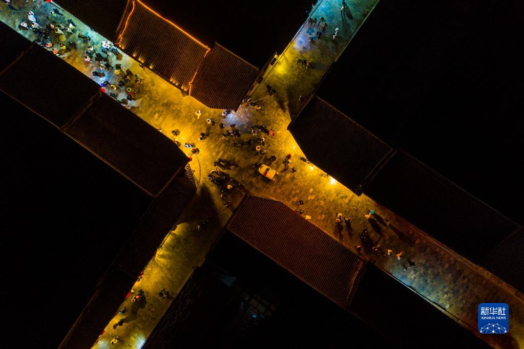 2月8日,游客在平遥古城内参观(无人机照片)。新华社记者 杨晨光 摄