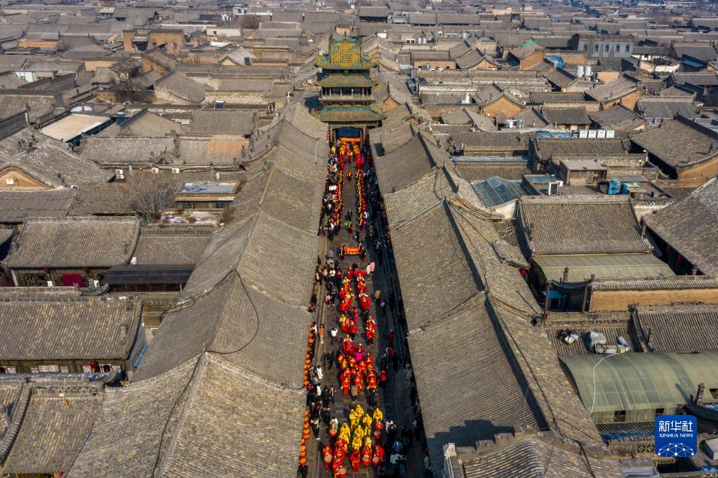 这是2月8日拍摄的平遥古城一角(无人机照片)。新华社记者 曹阳 摄