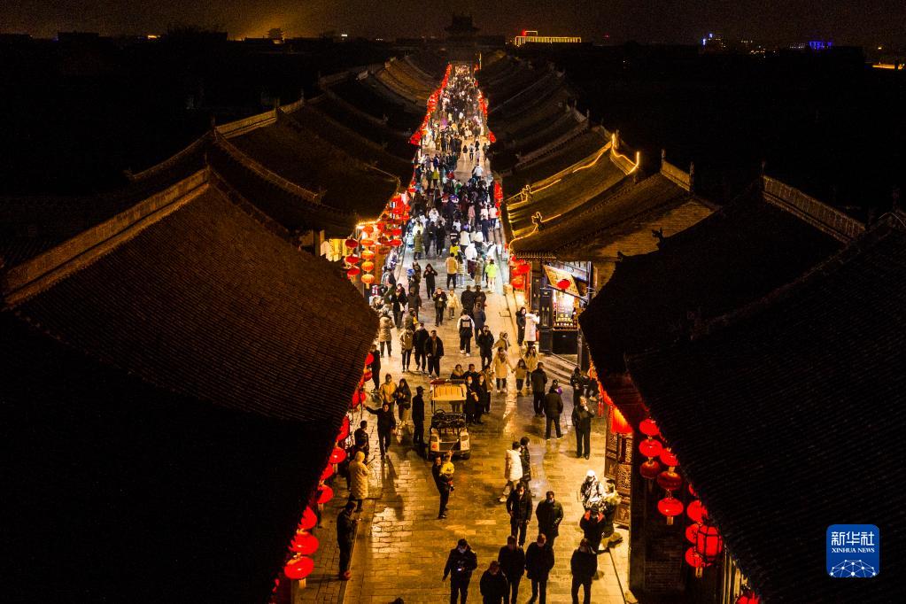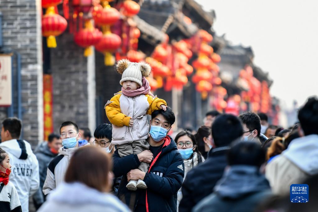 2月8日,游客在平遥古城内参观。春节期间,山西省晋中市平遥古城举办2022“我们的节日·春节——平遥中国年”活动,吸引各地游客前来参观。平遥古城是中国保存最为完整的古城之一,被列入世界文化遗产名录。新华社记者 曹阳 摄