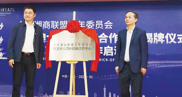 日前,全球湘商联盟青年委员会粤港澳大湾区招商合作中心揭牌仪式暨2022年招商合作启动会在广州举行。湖南省工商联党组成员、副主席、商协会党委书记吴曙光为“全球湘商联盟青年委员会粤港澳大湾区招商合作中心”揭牌。