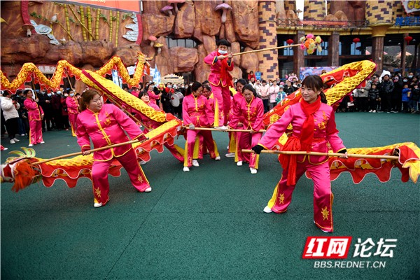桃花江女子舞龙队元宵表演。图/刘太平