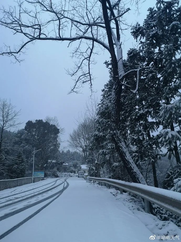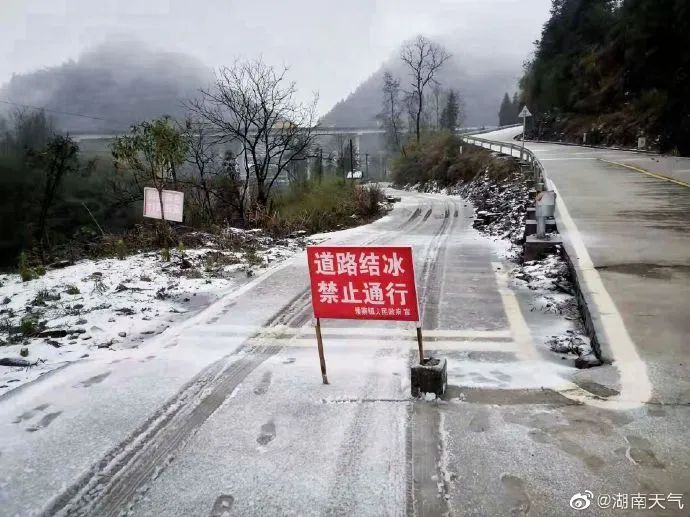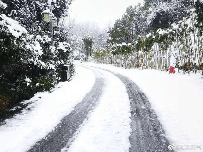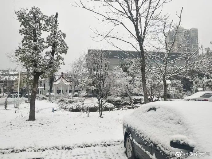 根据最新监测和分析气象资料显示,湘中以北地区已出现雨夹雪或雪,未来两天上述地区仍将出现雨夹雪或雪,且湘中部分地区有大到暴雪。