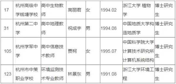 此次公布的名单共涉及25所学校(校区),从年纪和学历来看,这些新晋高中老师以应届毕业生为主,有126位教师均为95后,其中还有1位00后教师。他们的院校履历也很耀眼——