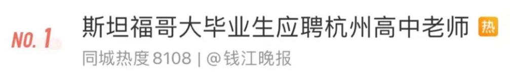 “斯坦福哥大毕业生应聘杭州高中老师”冲上了同城热搜