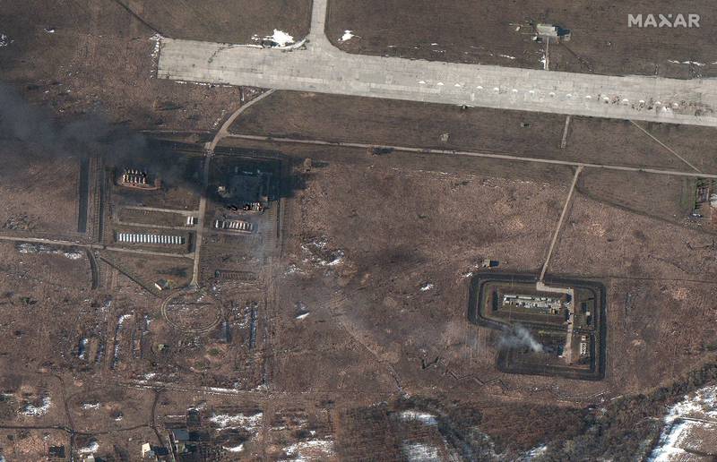 来自地理空间信息公司Maxar科技公司的卫星图像显示,在袭击过后,楚胡伊夫空军基地的油料储存设施和其他机场基础设施都被悉数破坏,燃料存储区域浓烟滚滚,疑似泄漏的燃油开始燃烧。值得一提的是,机场跑道在俄军的打击中却独善其身,几乎没有受到任何破坏,目前仍然保持着完整的运作能力。