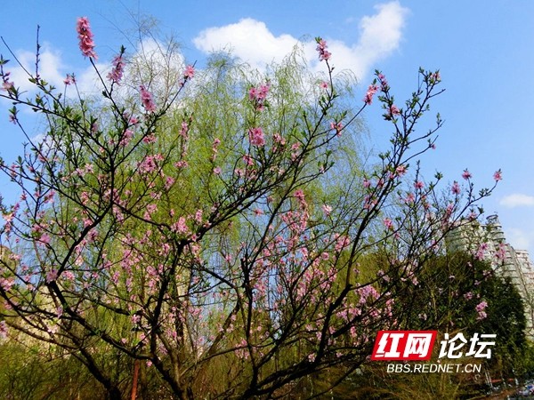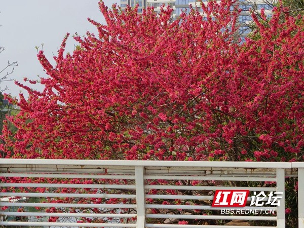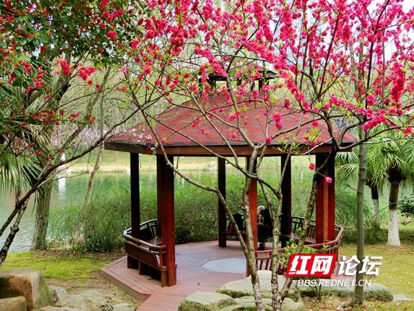 白马湖公园是常德市观赏桃花的综合性公园,种有桃树50个品种,数量10000余株,分布在公园各处。由于品种多,而且部分桃树应用了花期调节技术,所以拉长了桃花观赏期。虽然在场面上缺少了大片桃花景观入镜的效果,但各形各色的桃花错落有致地绽放,大大丰富了游客的观感,也别有一番风味,使人目不暇接,流连忘返。(图文/下官百平)