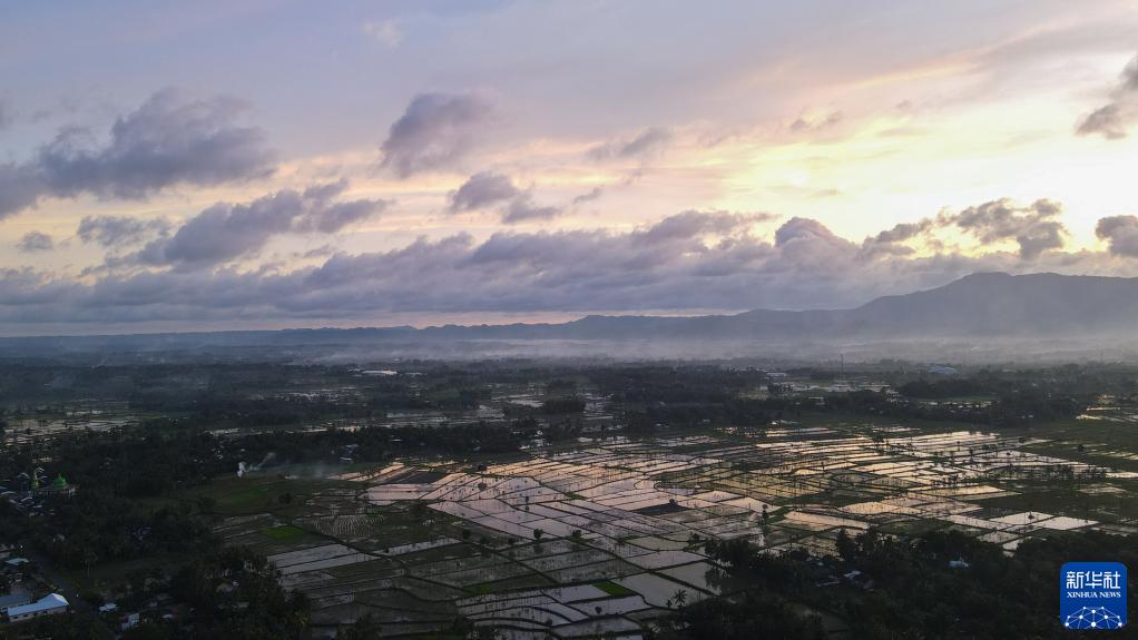 这是3月17日傍晚拍摄的印度尼西亚龙目岛苏卡拉拉村(无人机照片)。
