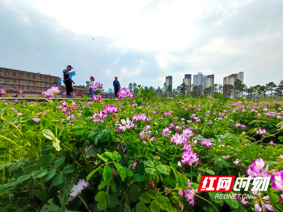 湖南省农业科学院科研基地的紫云英游客络绎不绝。
