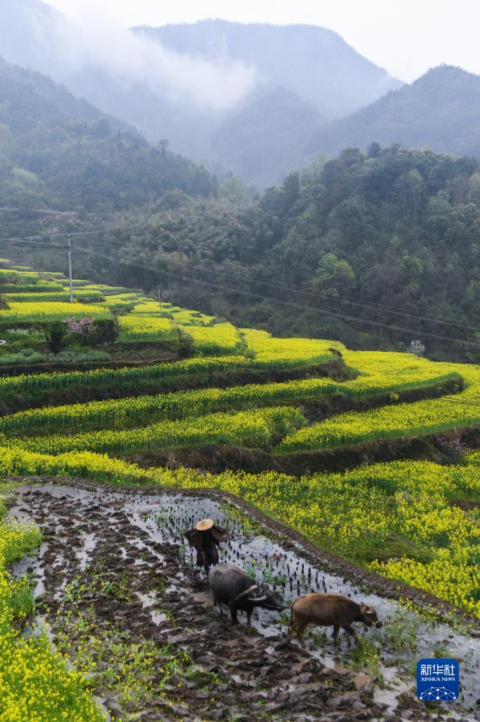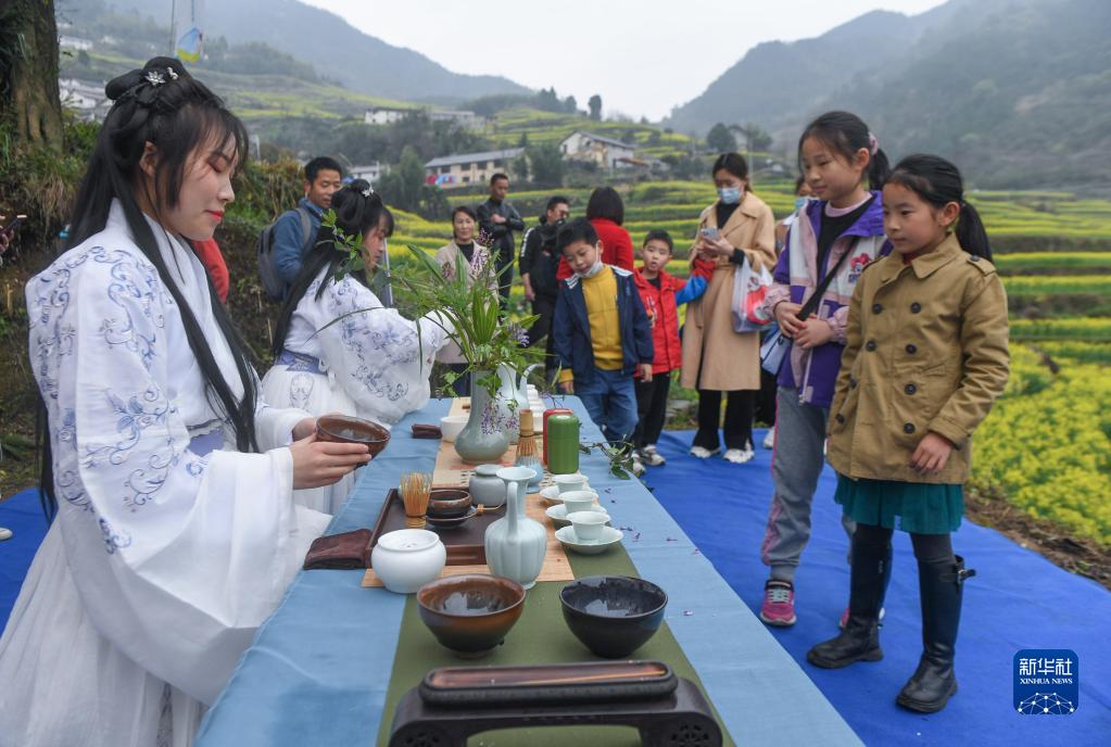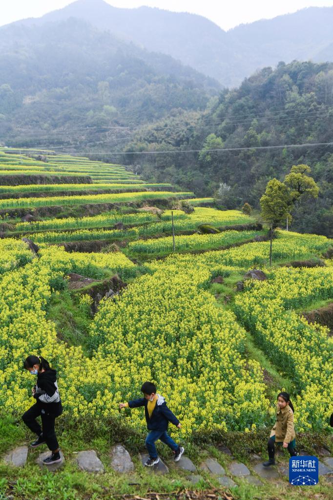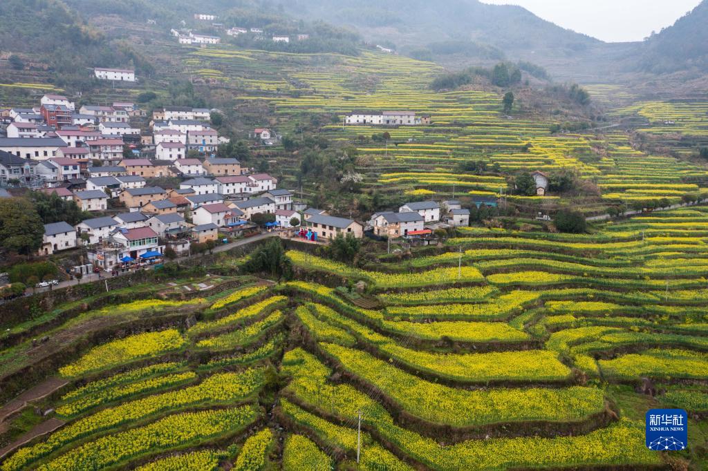 乾潭镇胥岭村是典型的江南山乡古村落,这里的400多亩梯田种满油菜花。本次春季花朝节展现了传统农耕文化魅力,利用农文旅交融促进全域旅游发展、助力共同富裕。新华社记者 徐昱 摄