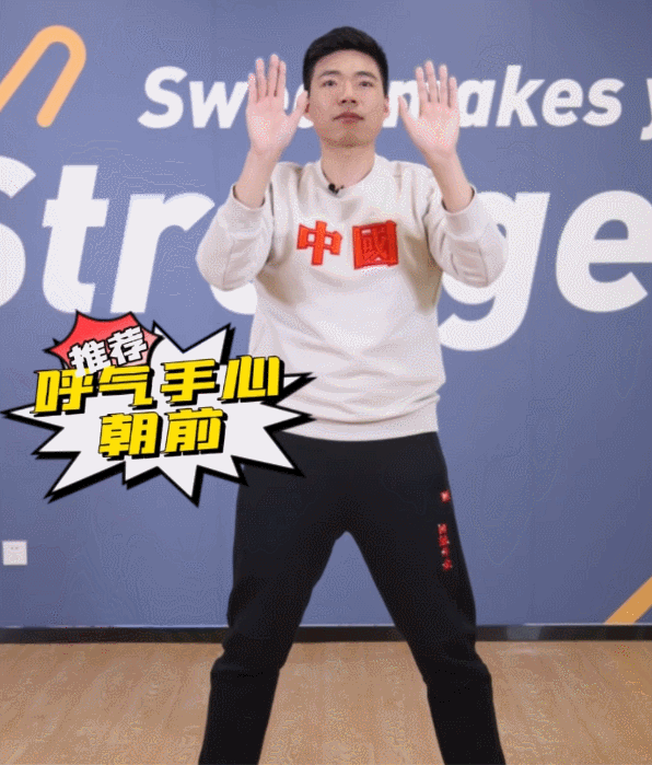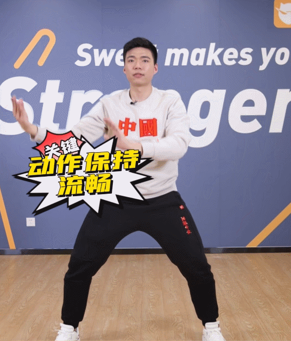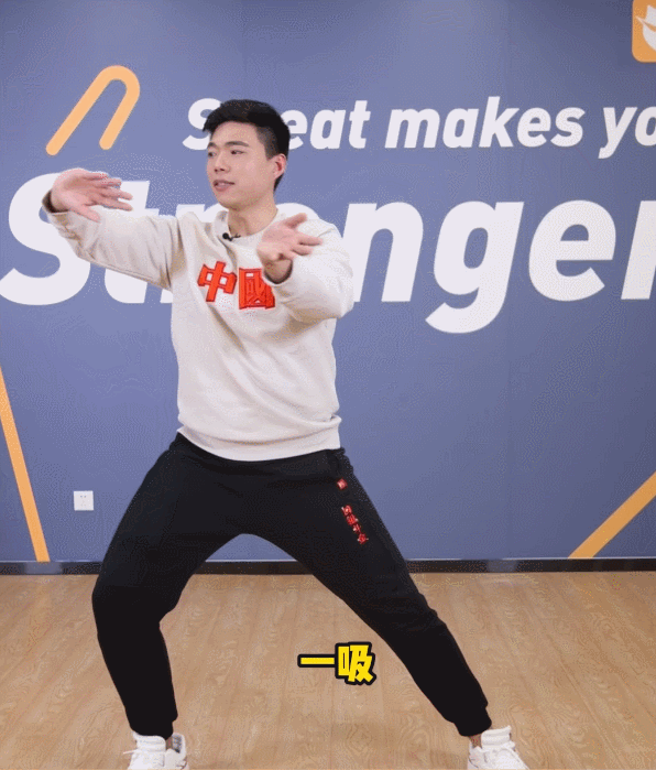 将太极拳中的“双手划圆”动作进行拆分,并伴随呼吸吐纳,在下肢肌肉进行温和锻炼的同时,让身体更放松,关节更灵活。
