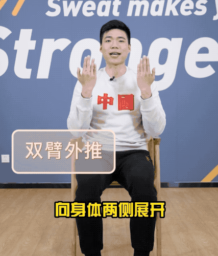 将八段锦中的“弯弓射雕”动作进行拆分,并伴随呼吸吐纳,让双臂达到充分的伸展,舒筋活血、改善柔韧。