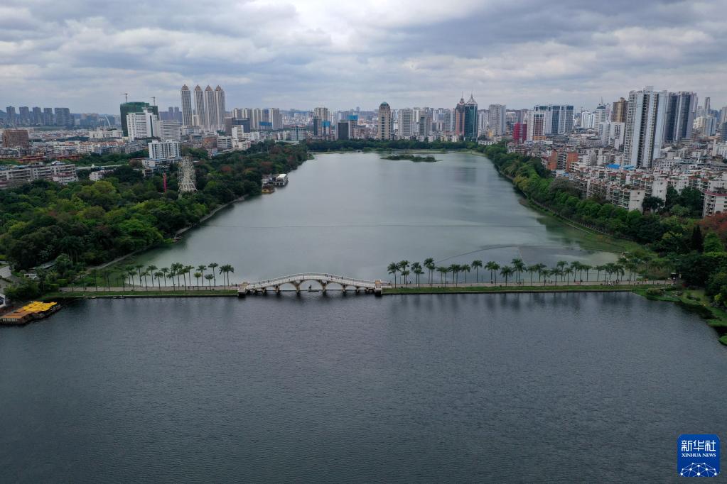 广西南宁市南湖公园湖光水色与绿树鲜花交相辉映,景色宜人。