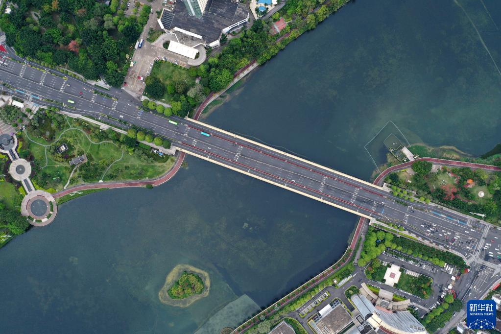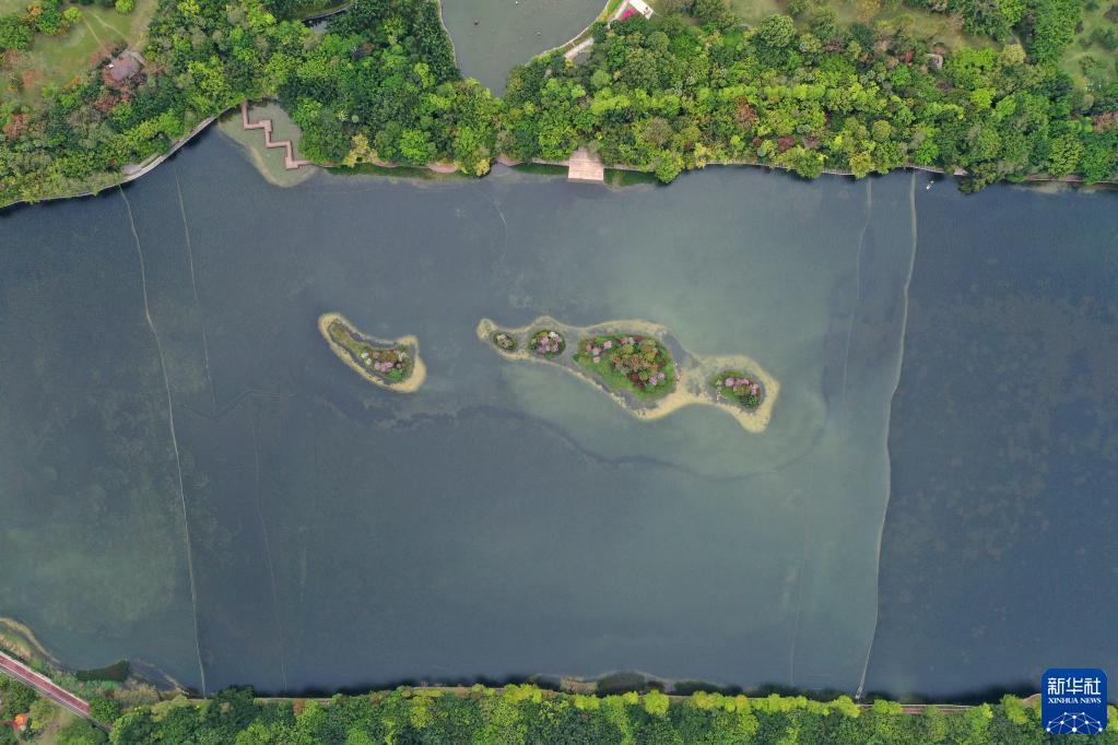 这是4月2日拍摄的广西南宁市南湖公园春色(无人机照片)。