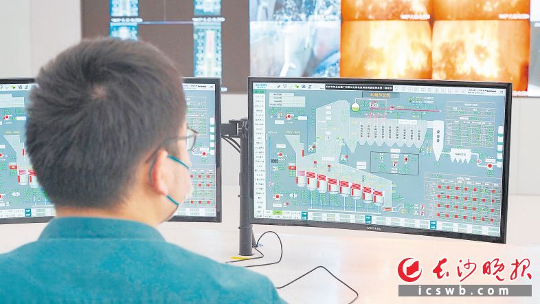 军信股份员工正在远程监控自动化系统。均为长沙晚报全媒体记者 刘晓敏 摄