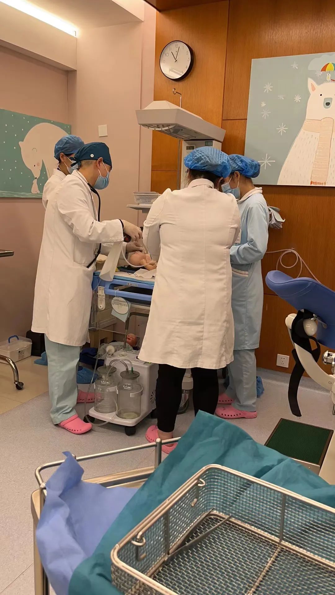 此次演练妇产儿科全体医护人员参加,采取先理论学习、后实战演练、最后分组讨论的培训模式。 随着助产士的一声紧急呼救,这场生命的急救迅速展开了!所有在场人员都立即进入角色,妇产科医生、助产士及护士迅速组成应急抢救小组,判断产妇情况,运用肩难产抢救的曲大腿、压前肩、旋后肩及翻转产妇四肢触地等方法,直到新生儿顺利娩出。医护人员把每一个步骤处理得有条不絮、严谨细致。