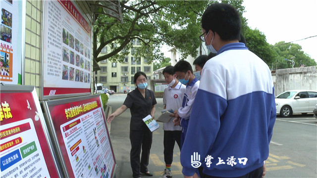 区人民法院还在区一中校园内放置“中华人民共和国反有组织犯罪法”宣传展板,过往学生纷纷驻足观看学习。