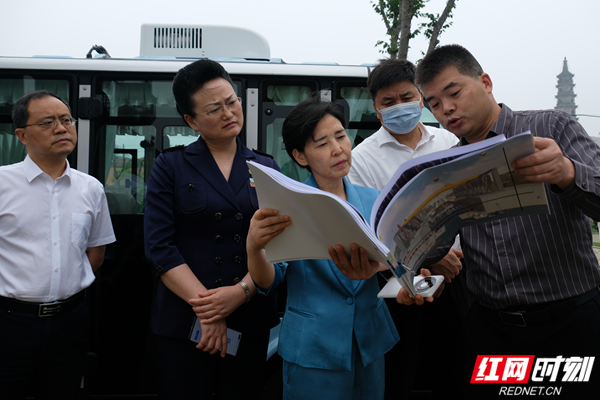 马娜一行先后来到洞庭南路、岳阳港遗址公园、沿江环湖生态旅游廊道等地,实地调研洞庭南路历史文化街区项目开发建设情况。每到一处,马娜和工作人员仔细交谈,详细了解当前项目进展情况以及建设过程中所遇到的困难。