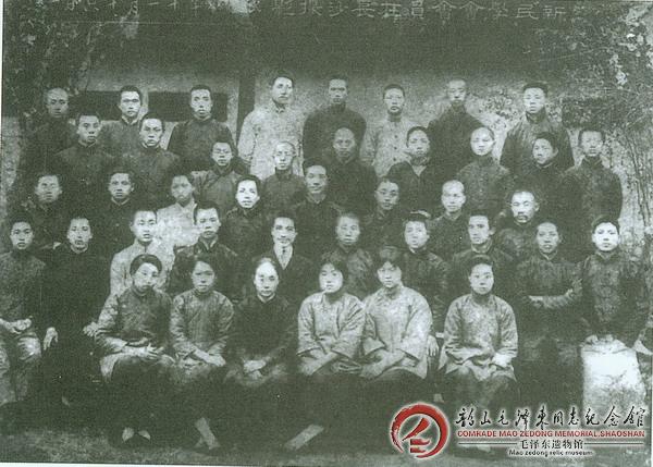 1919年11月16日,新民学会部分会员在长沙周南女校的合影。后排左4为毛泽东。