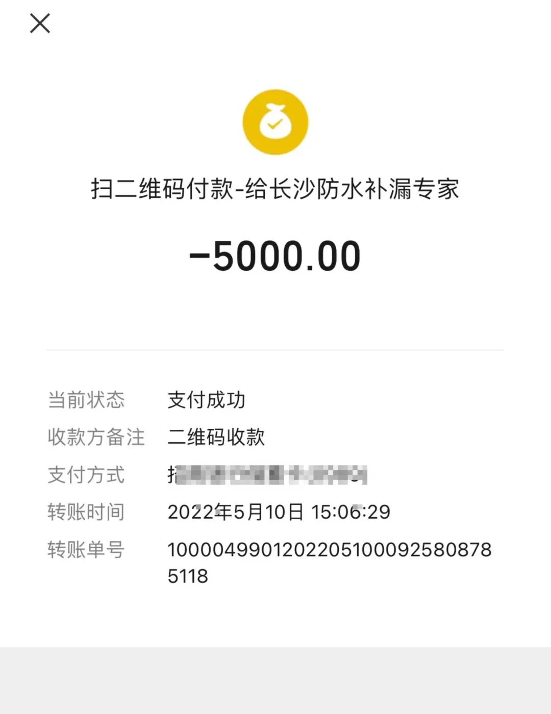 第二天下午1点多师傅上门,“他就去楼下看了眼漏水的地方,没带工具,没有测量,也没有找漏水点,然后就说可以做。他提来两个白色的塑料桶,拿电子秤称了下,说材料连桶近130斤,材料按斤算,88元一斤。”