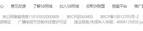 基于之前的互联网行业及广告业从业经历,黄先生在58同城官网底部找到其icp(互联网信息服务)备案信息的颁发单位是在北京,于是致电北京12315投诉该平台。