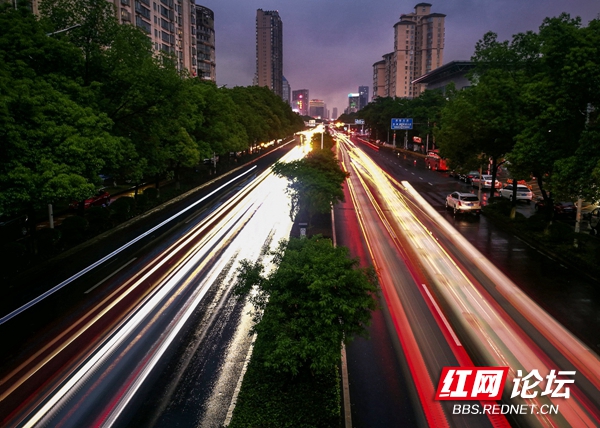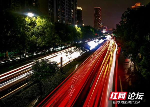 黑夜里各种车辆驶过都留下了属于自己的印记,白天这个繁忙的城市,在一束束光中被衬托得十分繁华且华丽,这无疑是这座城市最美的时刻,每条道路都变成了一个闪耀的舞台。(图文/ @万里云1688)