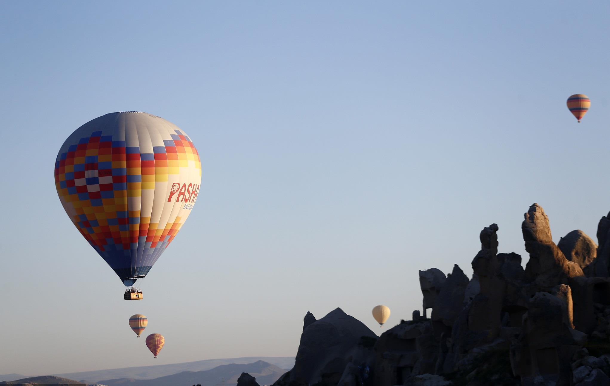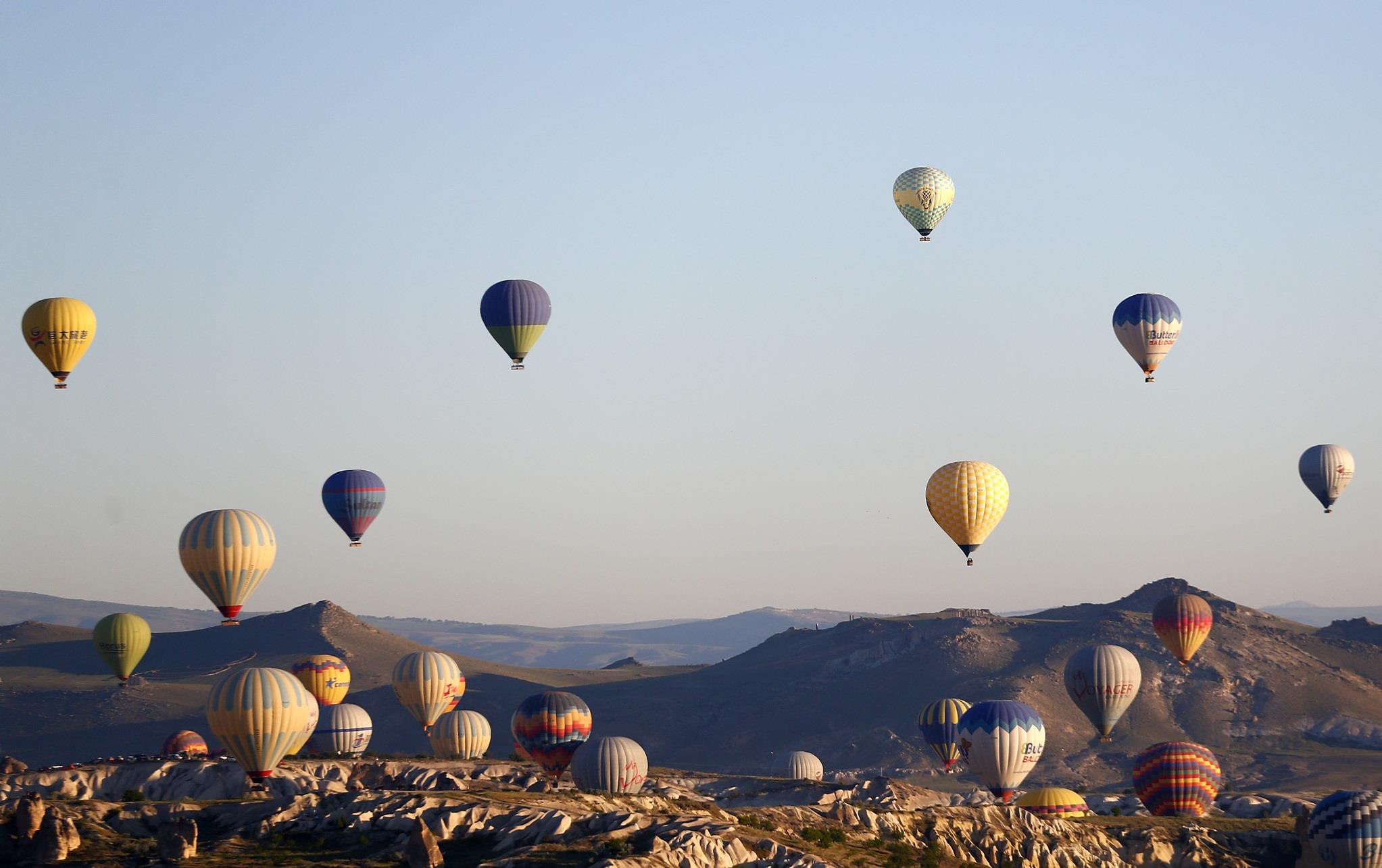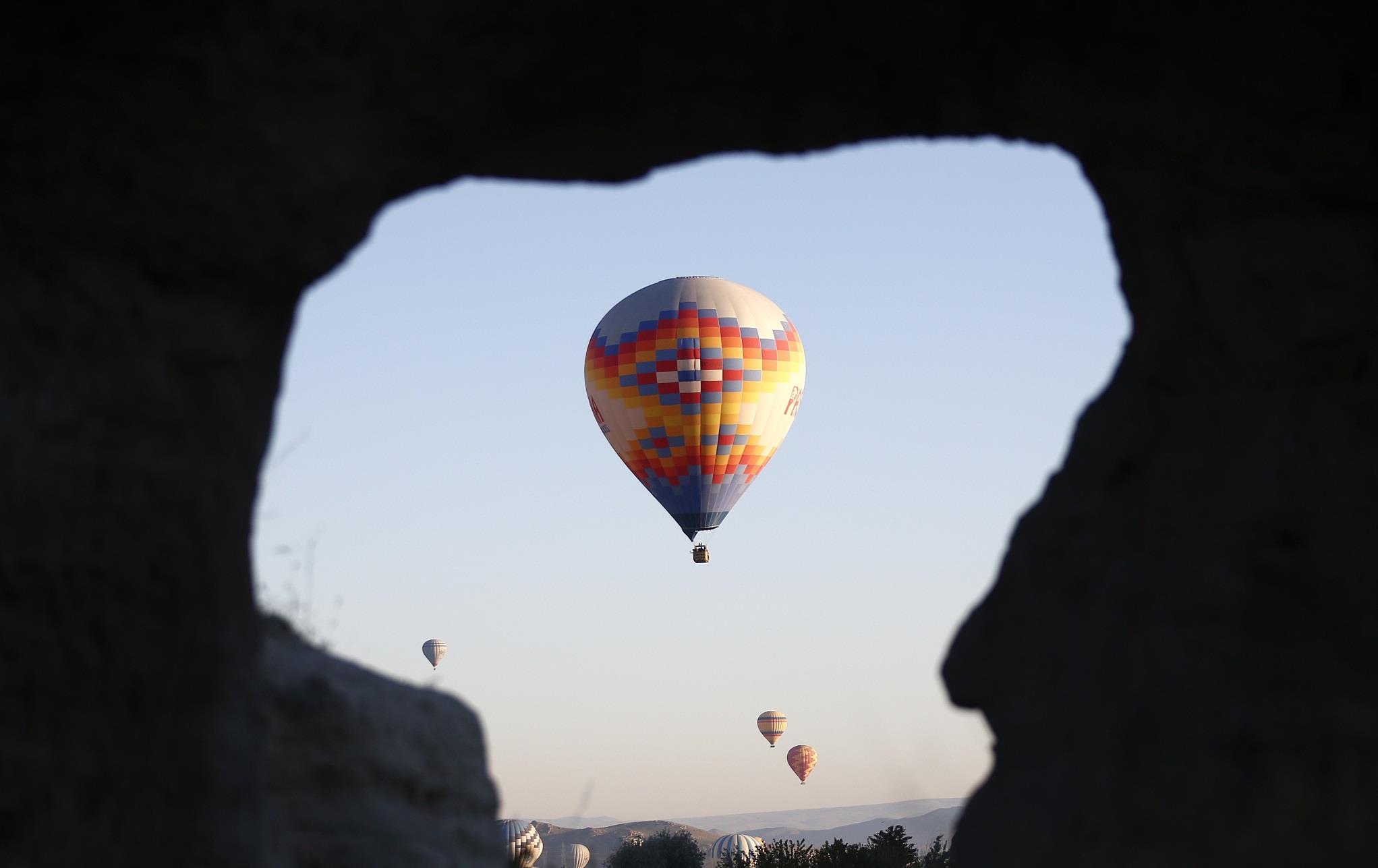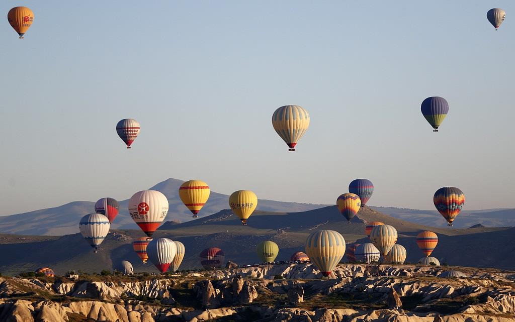 当地时间5月21日,土耳其卡帕多西亚地区,多彩热气球飞上天空。