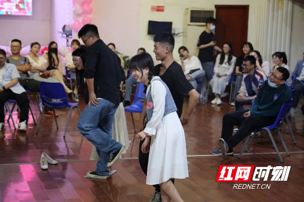活动过程中,男女青年以团队“作战”的形式进行比拼,通过“全城搜索”“抱团取暖”“你侬我侬”“不倒森林”等互动游戏,拉近彼此之间的距离,现场氛围热烈,欢声笑语不断。