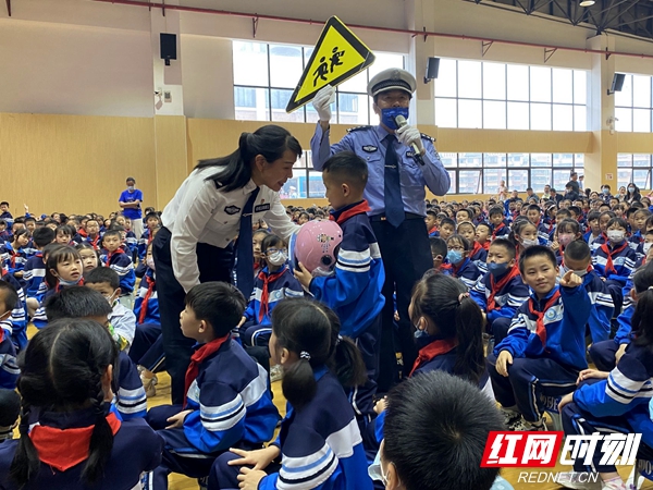 红网时刻湘潭5月25日讯(实习生 闫思齐 吴英洁 记者 谢文礼)为进一步做好道路交通安全宣传教育,提高广大师生交通法制观念和安全意识,预防道路交通事故发生,5月25日上午,湘潭市公安局交警支队联合岳塘区教育局在滴水湖学校开展交通安全宣传教育进校园活动。