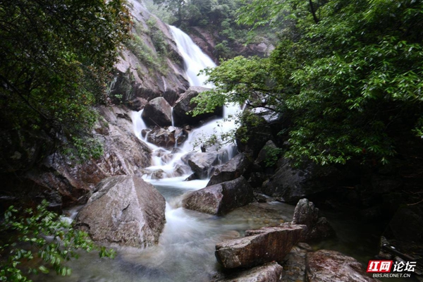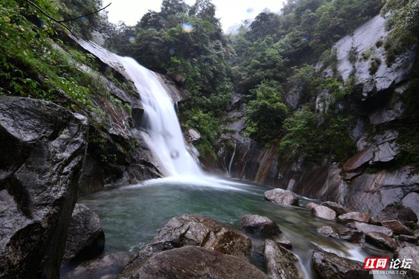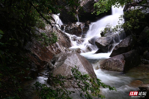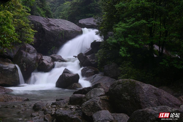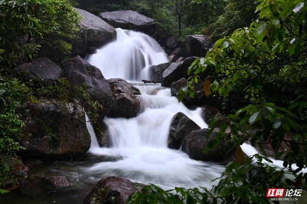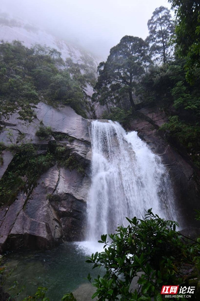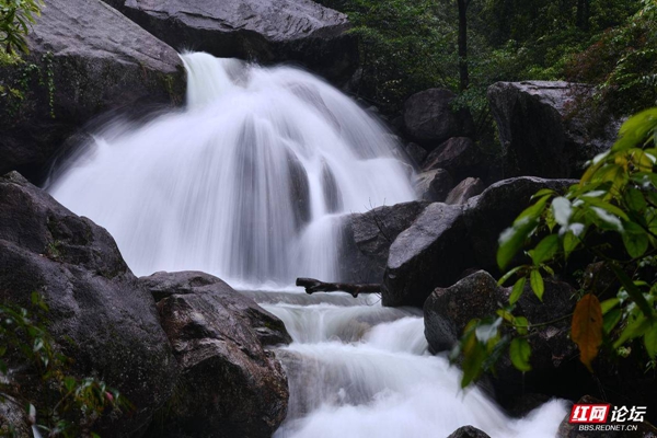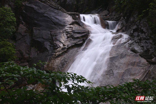 ▲图说:5月26日,作者冒着大雨,拍了一组千家峒国家森林公园内飞泻而下、气势恢宏的瀑布群。