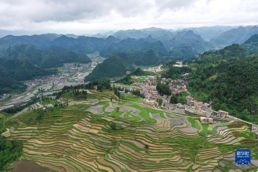 这是6月1日拍摄的贵州省贵定县沿山镇石板村腊利梯田(无人机照片)。