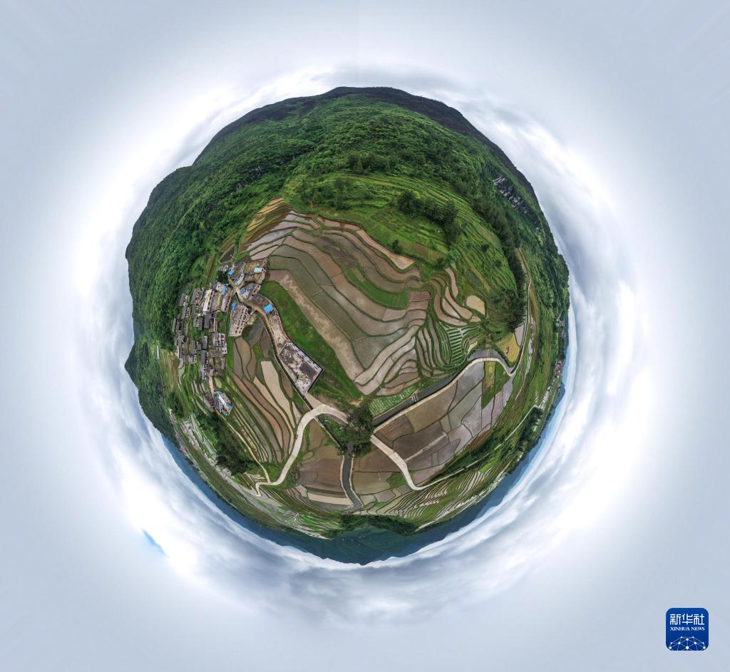 这是6月1日拍摄的贵州省贵定县沿山镇石板村腊利梯田(无人机全景照片)。
