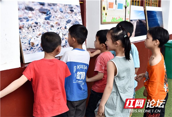 孩子们在学习志愿者带来的戈壁无人区知识。