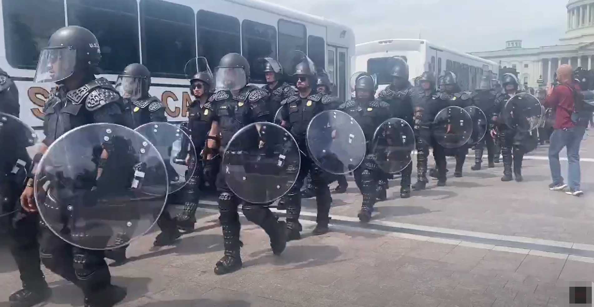 6月24日,美国国会警察全副武装,应对可能发生的暴力活动。(社交平台)