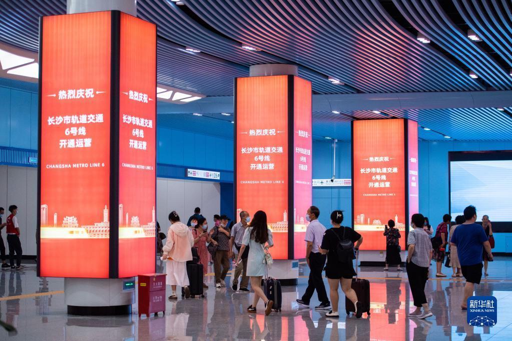 当日,长沙地铁6号线载客始发。6号线西起梅溪湖片区谢家桥站,东至黄花机场。线路全长48.11公里,设车站34座,将多家高校、医院串联,是长沙市首条直达机场的地铁线路。新华社记者 陈思汗 摄