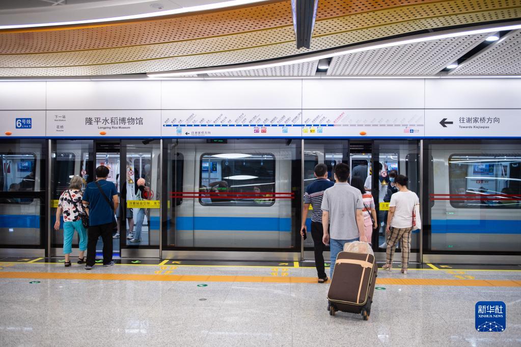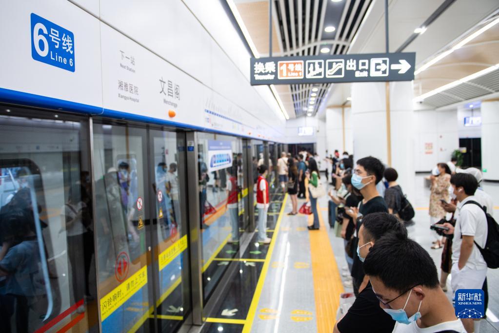 6月28日,在长沙隆平水稻博物馆地铁站,市民在上车。