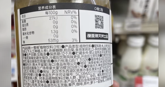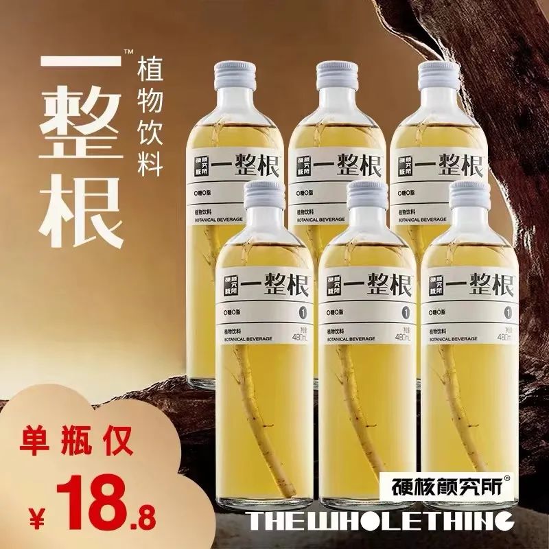 资料显示,硬核颜究所(武汉)食品科技有限公司于2021年12月注册,上述植物饮料是该公司今年5月推出的新品,因瓶内含有一整根人参,故而取名“一整根”。