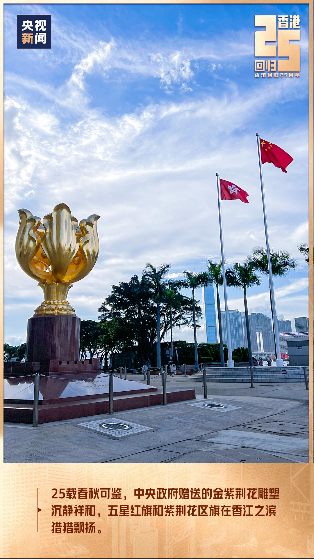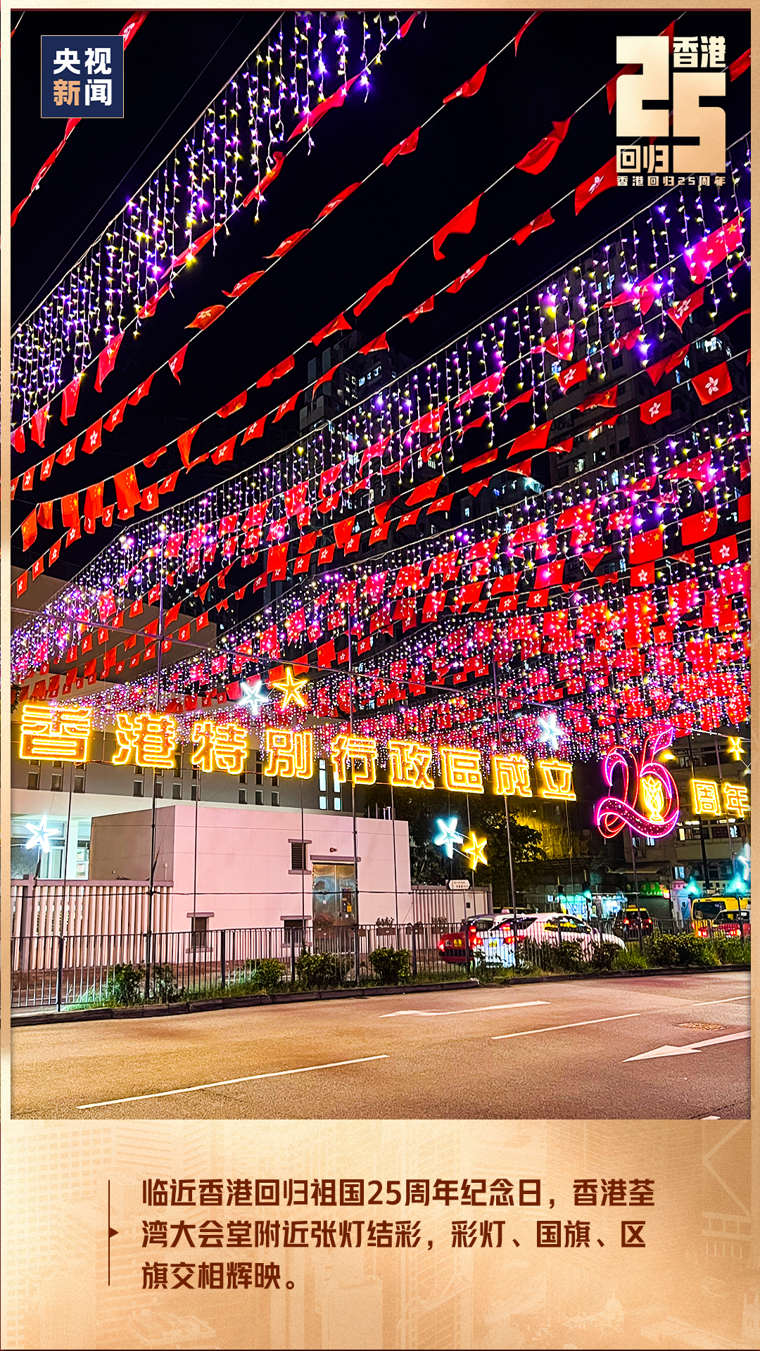 明天(7月1日)是香港回归祖国25周年纪念日。香港的街头巷尾早早悬挂起一面面国旗和区旗,大街小巷张灯结彩,夜晚的维多利亚港也亮起了灯光秀……25载春秋可鉴,一起走进香港,祝福香港!
