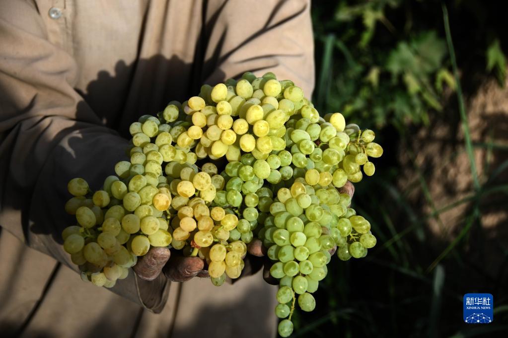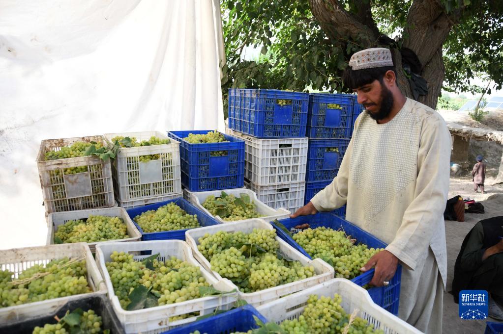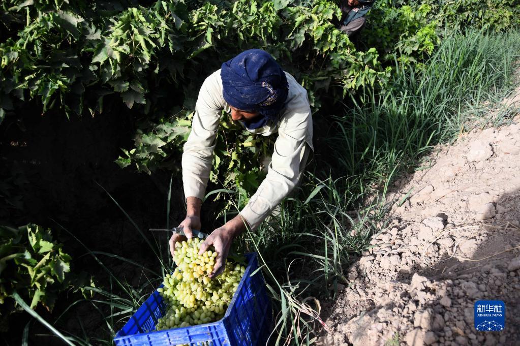 7月2日,农民在阿富汗坎大哈省扎里地区采摘葡萄。