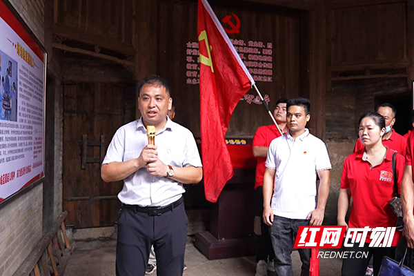 在南岸村竹树脚革命旧址,村支书贺周俊化身红色故事讲解员,忙着接待各地前来参观学习的人,为他们讲解这里曾经发生的革命故事,重温革命历史。