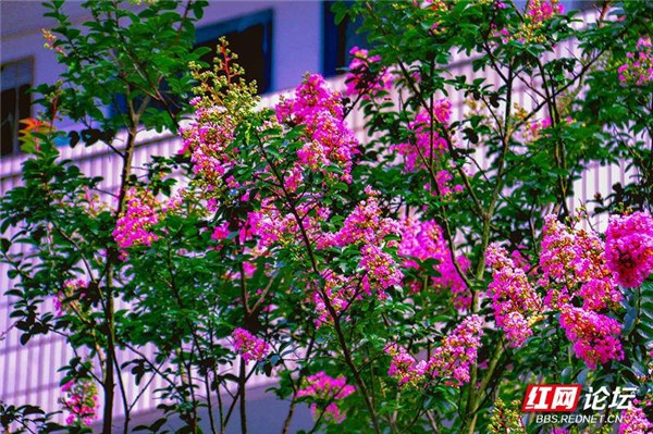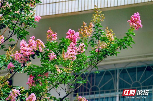 紫薇花寓意幸运,希望这些盛开的花朵,能给所有师生带来好运和幸福。