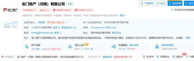 企查查网站信息显示,郑州重量级地产企业—— 名门地产(河南)有限公司申请破产重整, 据了解,该公司累计执行信息40余条,中建二局、广发银行、中融国际信托等,都曾将名门地产告上法庭,后者共35次被列为失信被执行人,被执行总金额达107亿元。