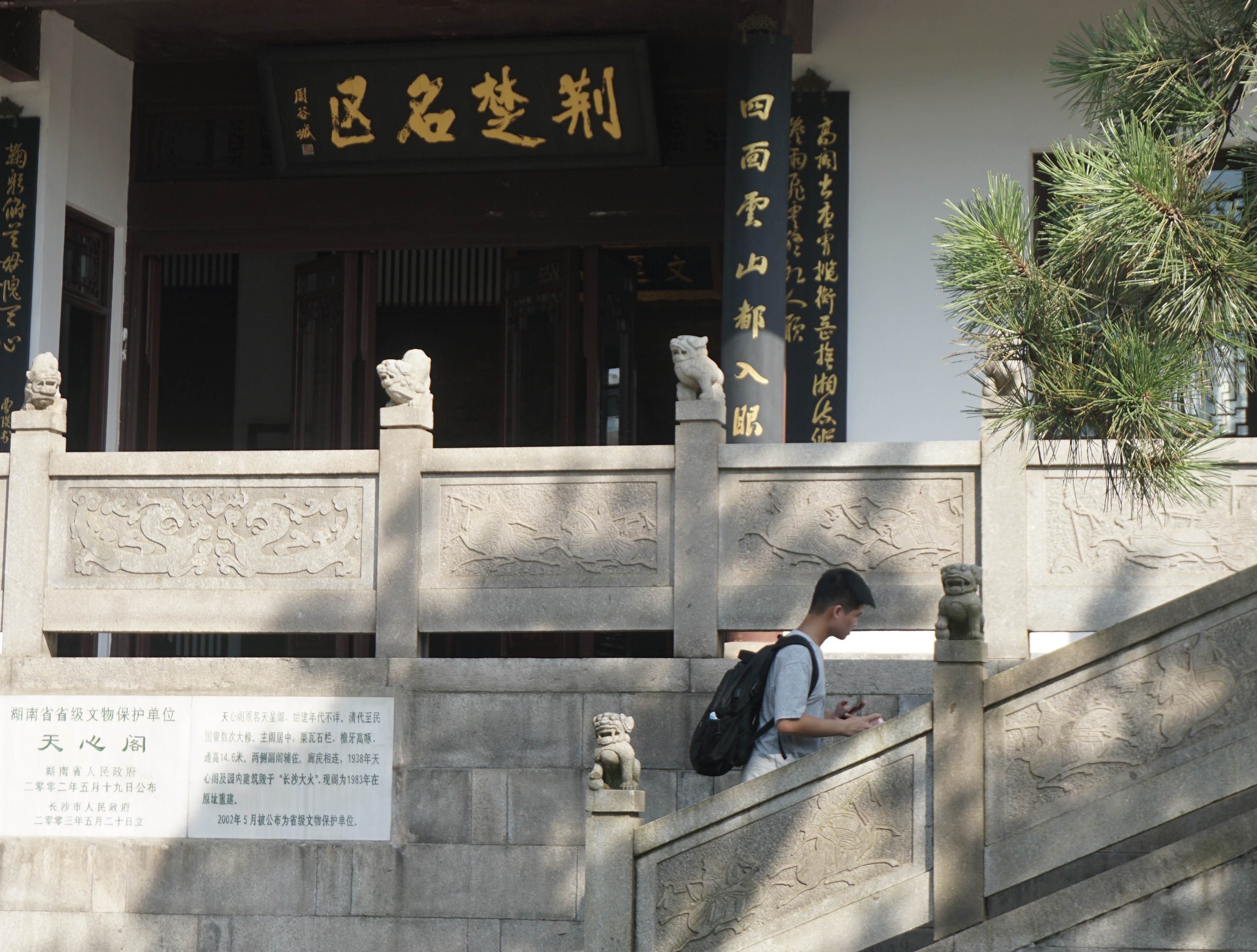 来自广州的王同学被朋友带着来到天心阁。之前他们只依稀知道天心阁曾在民国时被毁,来了一趟,对它有了更多的了解,“天心阁很有气势,里边的诗词和典故,很有历史文化底蕴”。