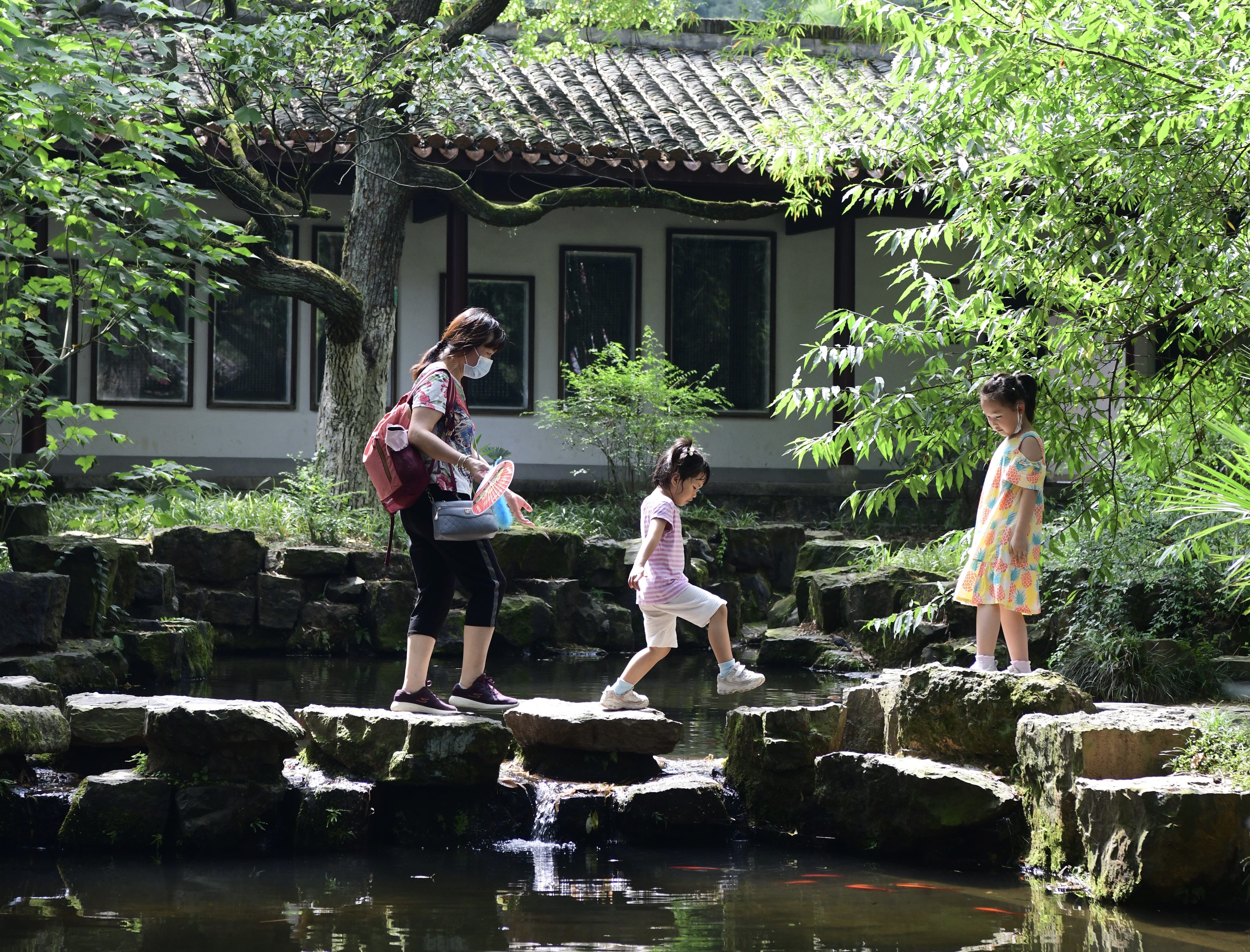 姿态优雅的阿姨在回廊阴凉处就着音乐练习舞步;背阴处,小孩子趴在爸爸肩头昏昏欲睡;穿着旗袍的少女轻轻挥着团扇,好友的镜头将她们与天心阁的时光定格在一起。伴着声声蝉鸣,楼下的公园里,老爷子们不知又下了多久的象棋。