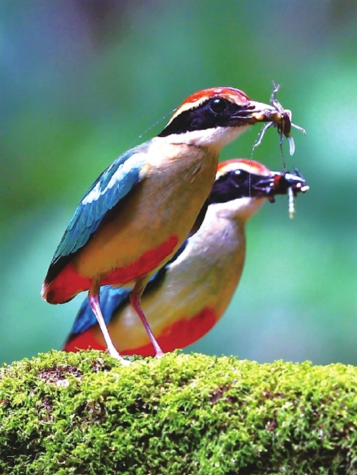 邓佳华一眼便认出,这只镜头中轻快跳跃着的小鸟正是仙八色鸫。不同于其他鸟类飞行穿梭于林间,它不慌不忙地踱步丛林中,精细地挑拣着寻找到的昆虫作为自己的午餐。