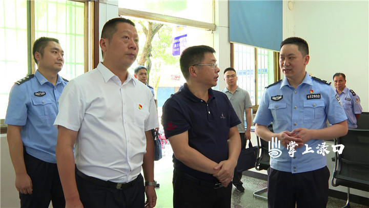 走进渌口派出所大厅,钟碧武与肖旭亲切握手交谈,看到肖旭精神抖擞的状态,钟碧武深感欣慰。