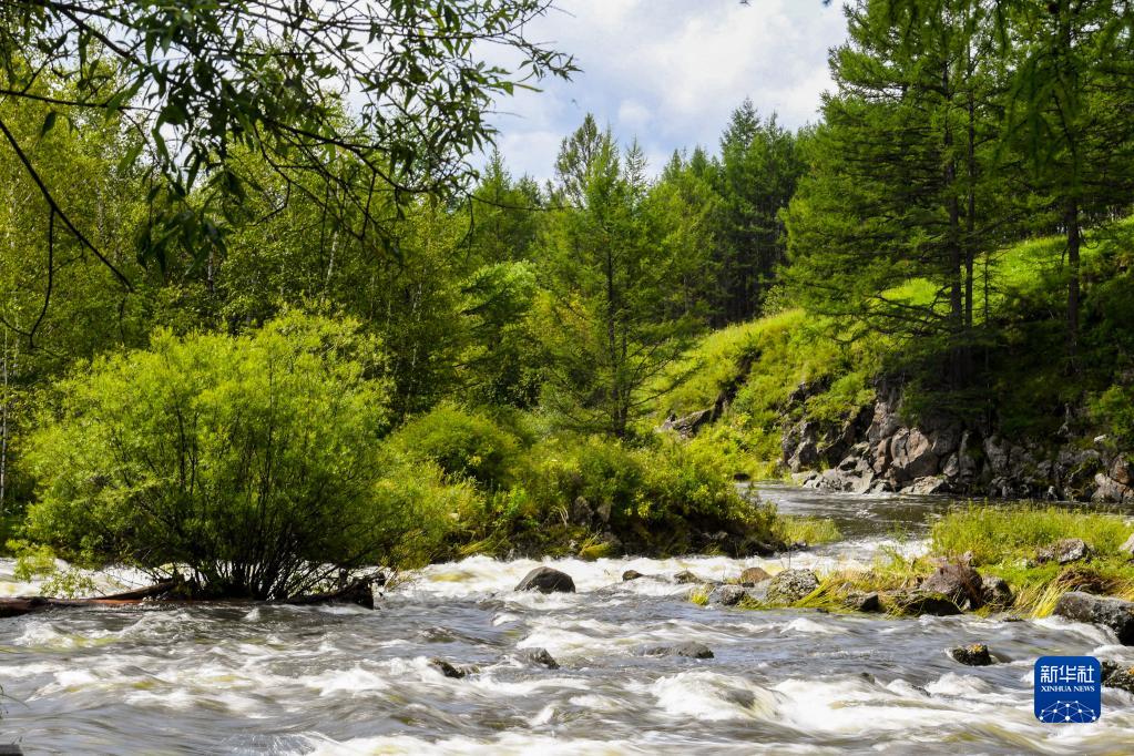 夏日时节,内蒙古兴安盟阿尔山市树木郁郁葱葱,河流蜿蜒清澈,美景宜人。