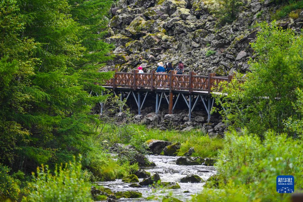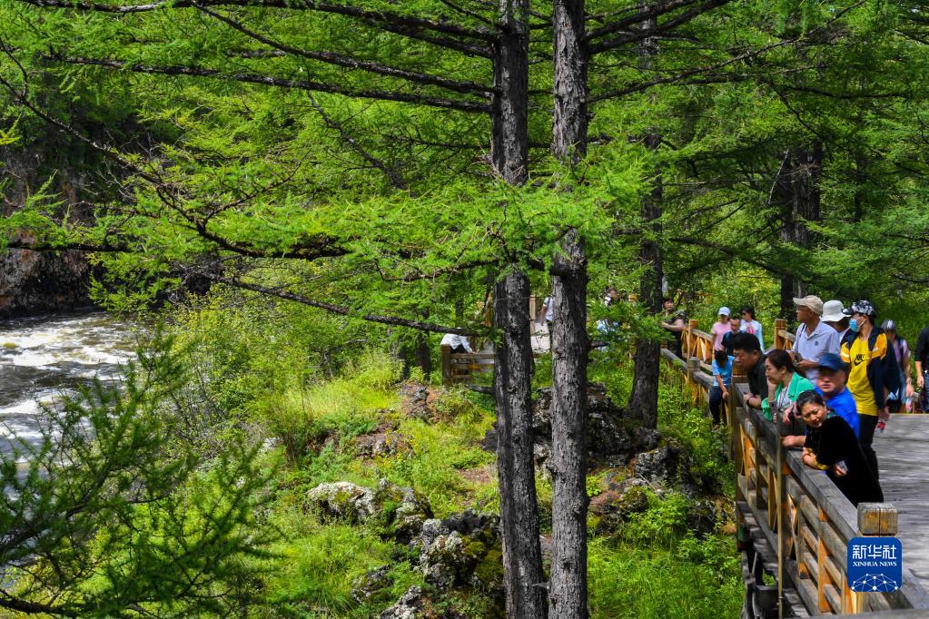 7月24日,游客在阿尔山国家森林公园游览。新华社记者 彭源 摄