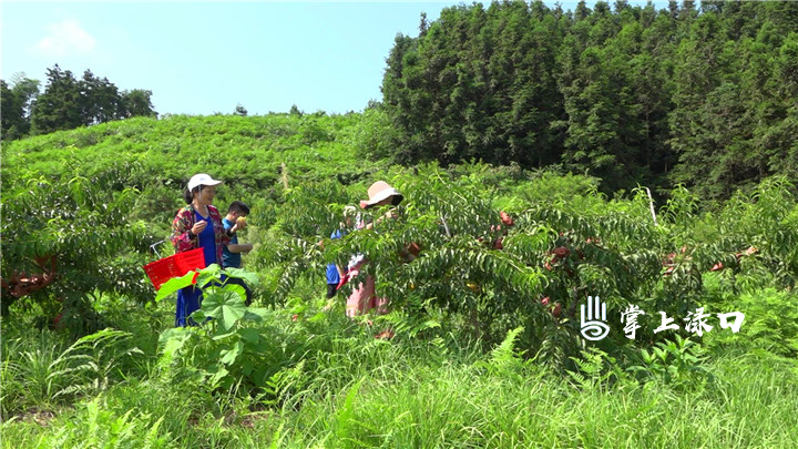 桃园基地特有的山区砂质土壤,孕育出果大、肉厚、色泽澄亮、口感香醇的优质黄桃。今年,基地3000余株黄桃树预计产量10万斤左右,产值超80万元。基地负责人还与当地农户签订了果园抚育管理和采摘劳动协议,带动周边60余人次就业。香甜可口的黄桃,也成为了当地农民的致富“黄金果”。