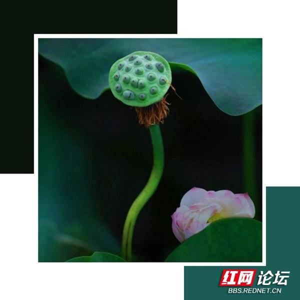 这荷花,倒也真的与众不同,淤泥里的莲藕竟是在节中先生出荷叶,然后在这节中又生出荷花,在水下有无边的幽情,在水上更情深恋恋,好像有种表里如一的心态。于是我不禁的想起了一首古诗:“青荷盖绿水,芙蓉披红鲜。下有并根藕,上有并头莲。”