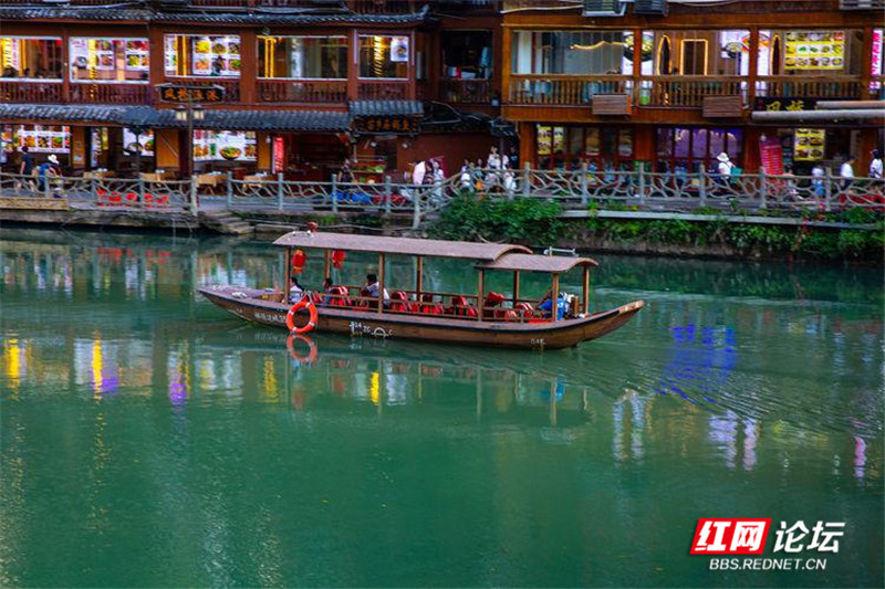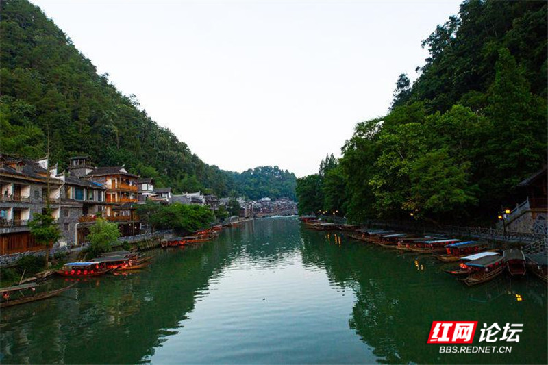 沱江河是古城凤凰的母亲河,她依着城墙缓缓流淌,世世代代哺育着古城儿女。坐上乌篷船,听着艄公的号子,看着两岸已有百年历史的土家吊脚楼,别有一番韵味。入夜,沱江倒影下的凤凰古城,变成一幅连绵不断的绚丽画卷,一种远离尘世的感觉油然而生。